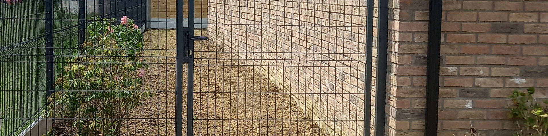 Montants 50x50 et traverses 40x20 en acier galvanisé assemblés par soudure.